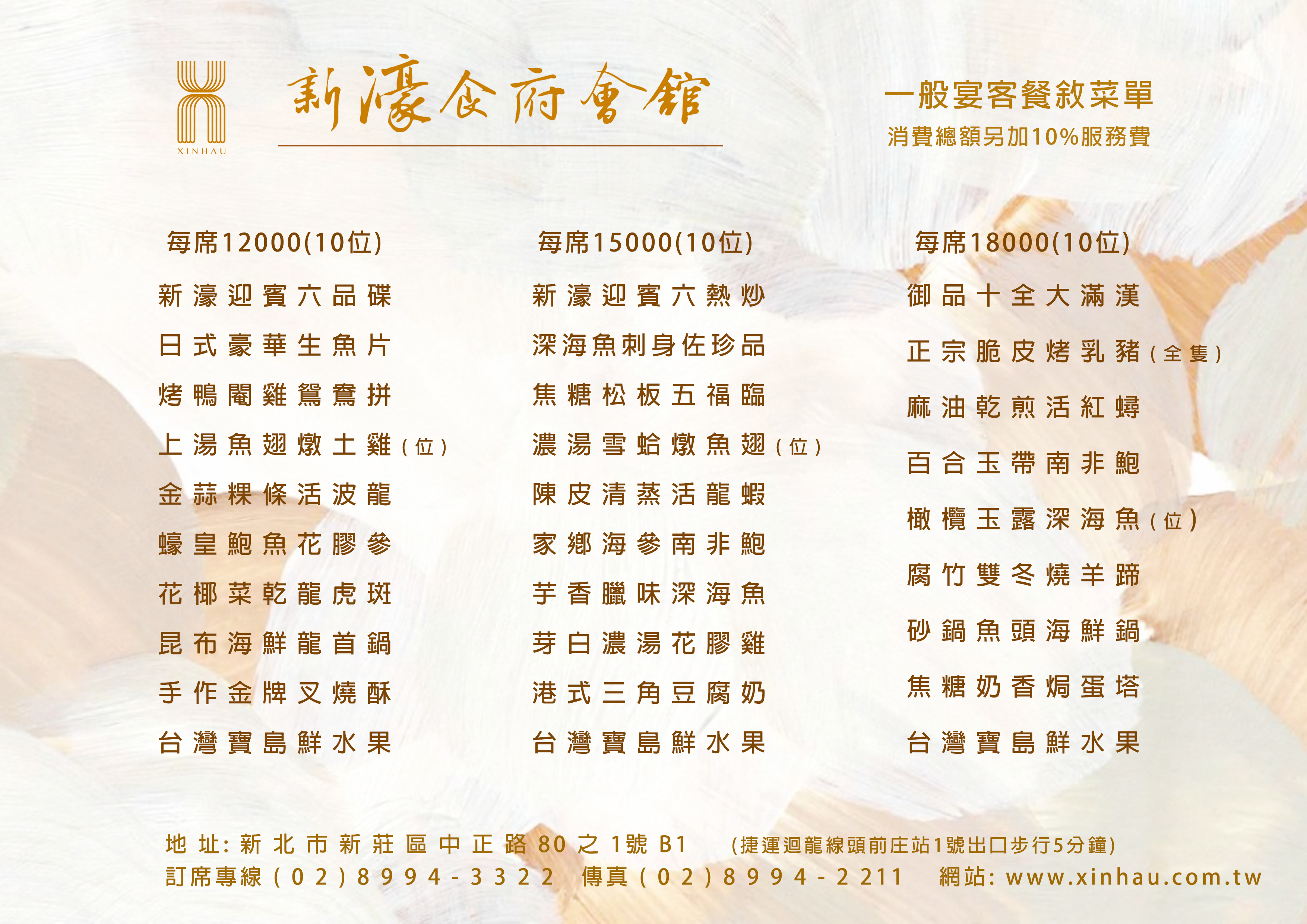 商務包廂 滿足您需求的包廂空間, 10人~24人皆可安排👌 每日頂級生鮮食材產地直送👏 精緻的美食饗宴,提供全方位餐飲體驗 適合餐宴招待、家庭餐敘等 並由專人服務,讓賓客更具尊榮享受⭕ 工商宴會 擁有全新規劃的完美設備,結合頂尖影音科技 編織場炫麗的光影效果 可彈性調整宴會空間 30人~1000人皆可安排👌 殷勤入微的貼心服務 適合舉辦社團活動、家族宴客、生日聚會👏 親朋好友商務聚餐首選